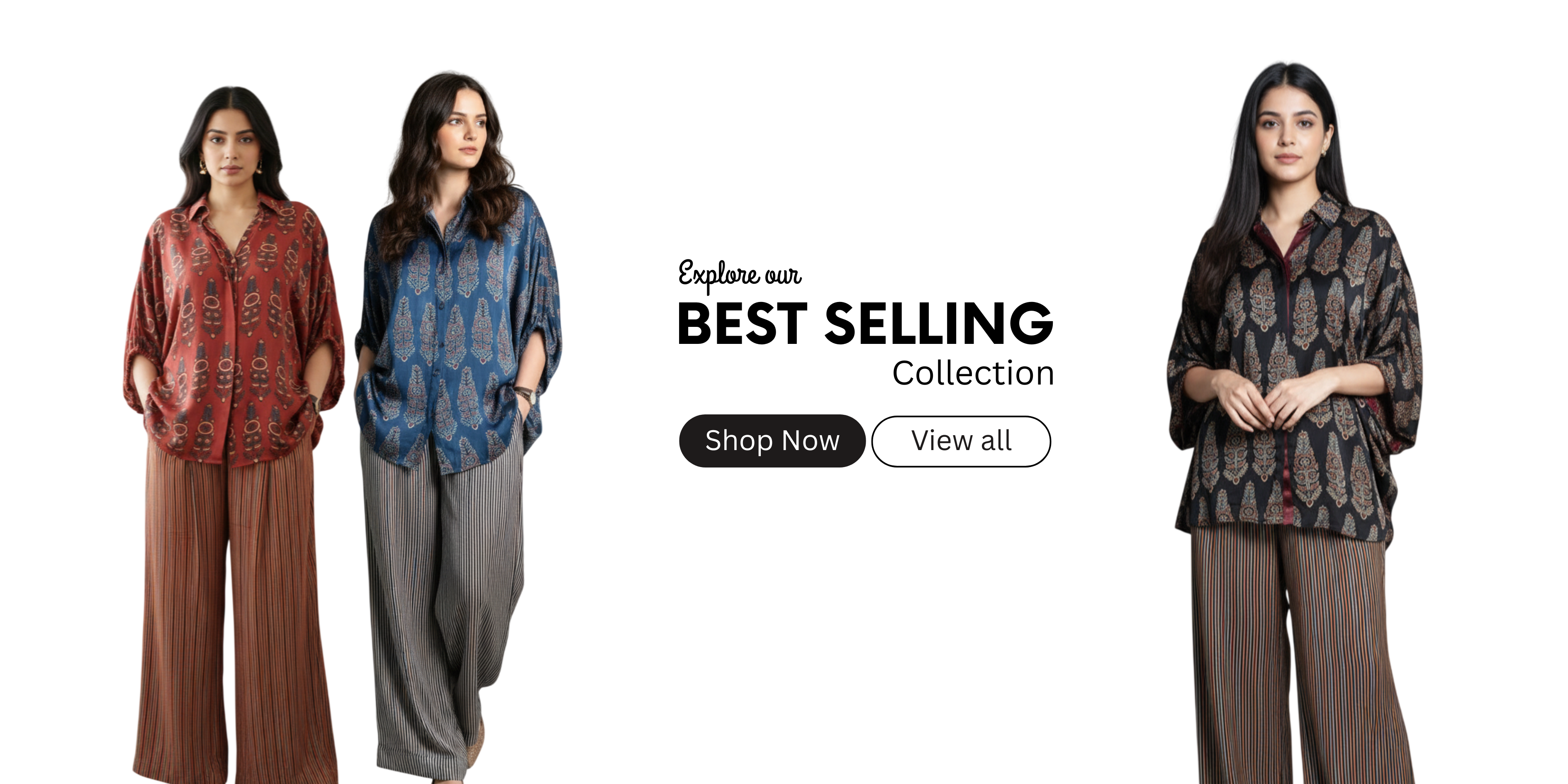 Taana Ajrakh Print Kaftan shirt cord-set for women