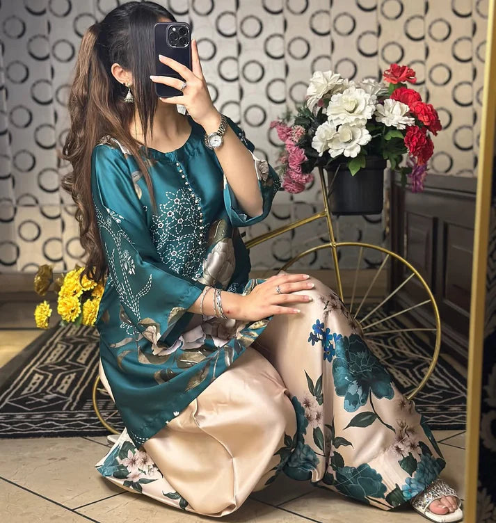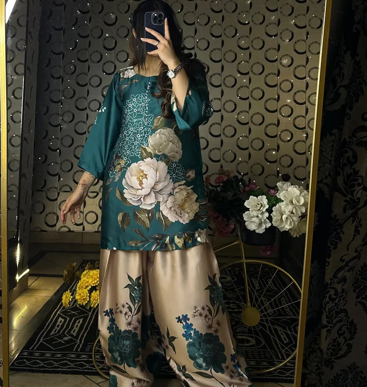 NATURAL CREPE DIGITAL PRINT CORD-SET