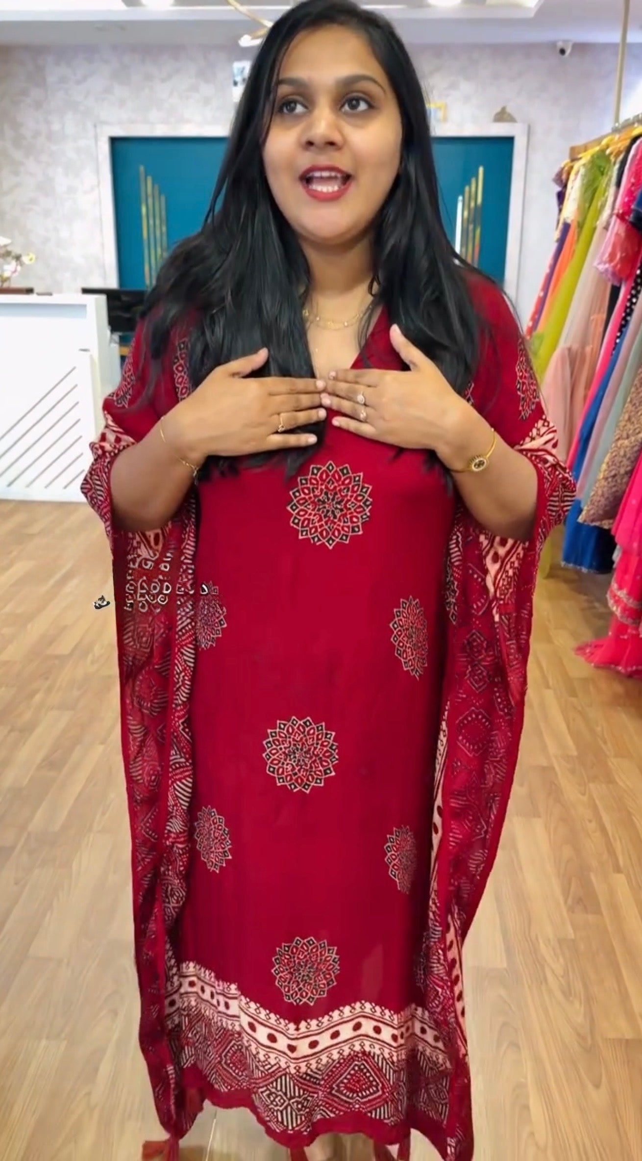 Eva Marron ajrakh print kaftan for women