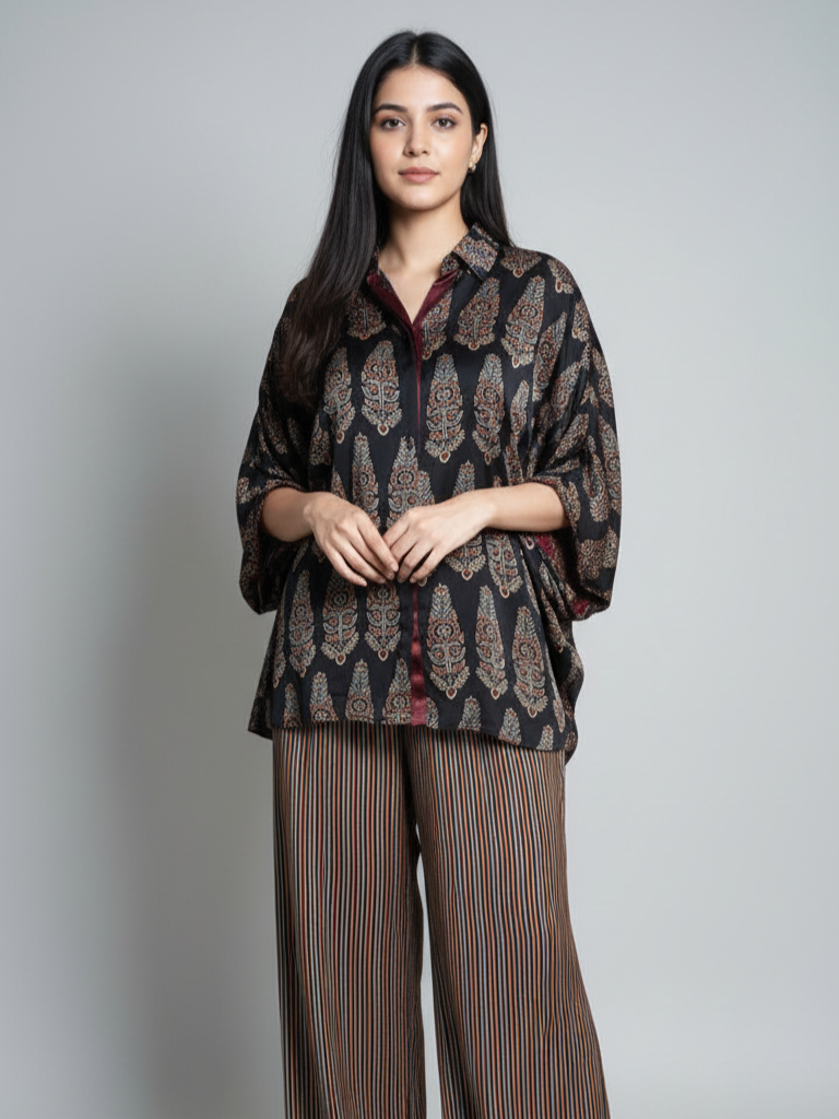 This shirt beautifully blends tradition with modern comfort. The unique handblock motifs make every piece feel artisanal and one-of-a-kind. Whether styled with statement jewellery or kept minimal, it adds instant elegance to your look.
